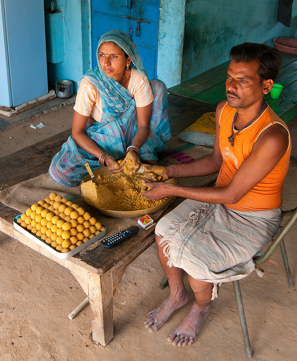 10. Chitrakoot - małżeństwo przygotowujące słodycze do ofiarowania w Hanuman Dhara